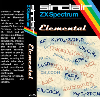 Entirely programmed in Boriel ZX Basic, Elemental brings a professional research tool for EA calculations to the humble ZX Spectrum! Elemental performs EA and MM calculations, provides the minima formula, and includes very advanced features, not found in any EA calculator on the market. In particular it supports:
